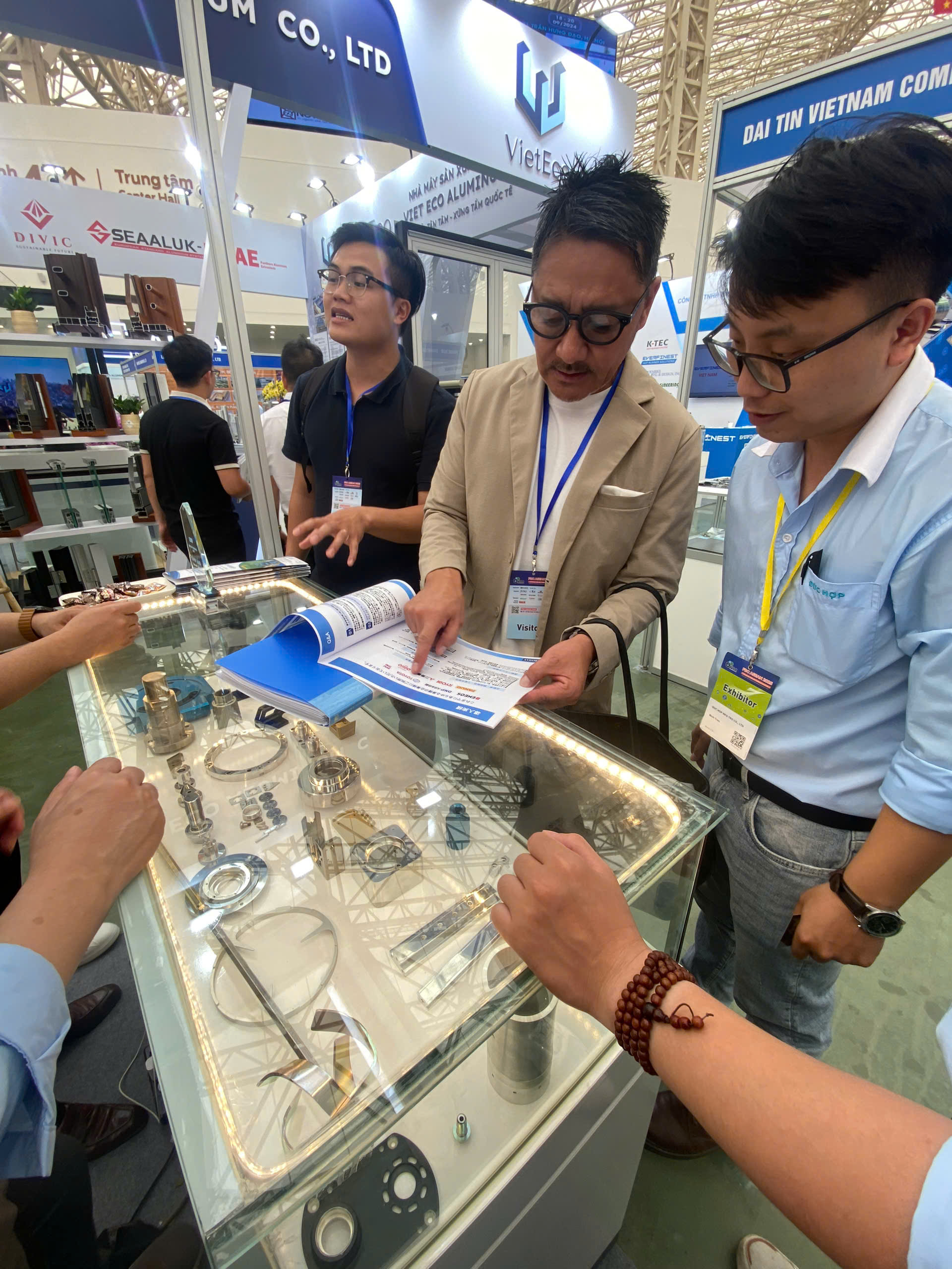 Duc Hop’s booth at the exhibition is professionally designed, showcasing sample precision-machined products along with a comprehensive set of company profiles, enabling customers and partners to easily access information about the business. In addition, Duc Hop also presents videos introducing its production process, quality management system, as well as major partners both in Vietnam and overseas.